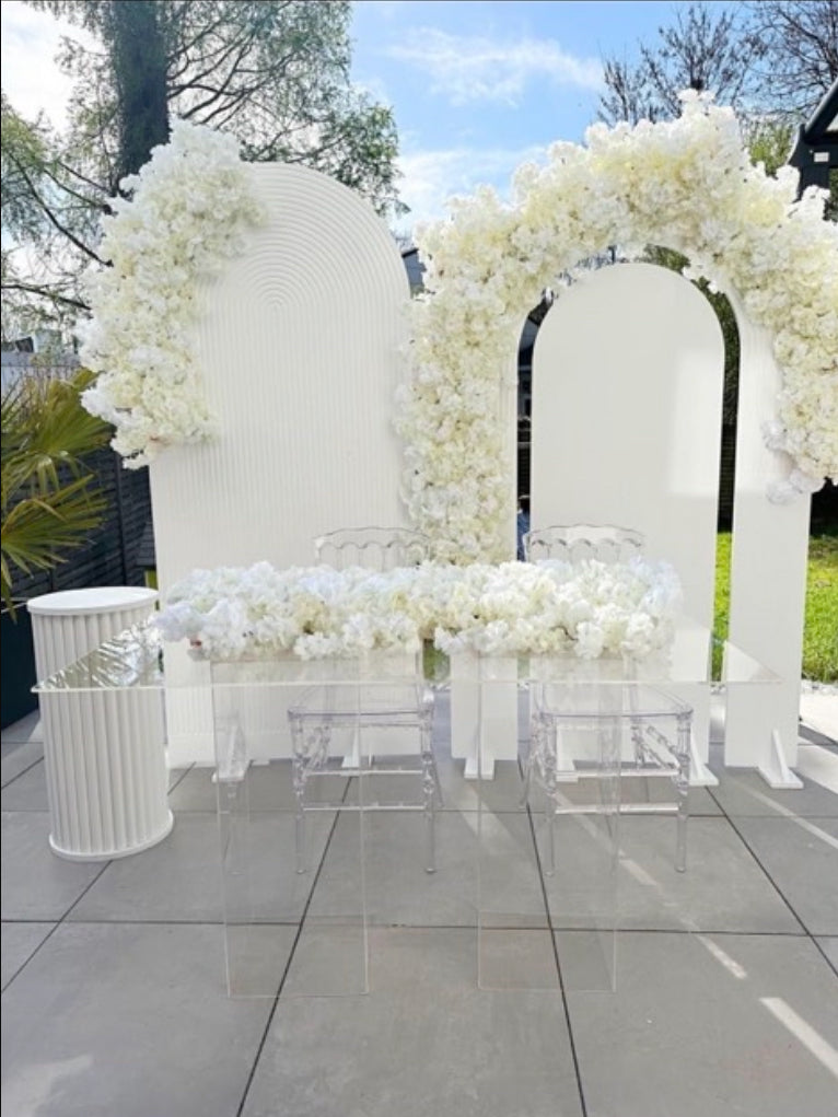 Setze ein echtes Highlight auf deinem Event mit dem Plexiglas Dekotisch – modern, transparent und absolut stilvoll. Dieses elegante Set besteht aus einer klaren Plexiglasplatte und zwei stabilen Säulen, die gemeinsam eine edle Präsentationsfläche für jede Veranstaltung bilden.